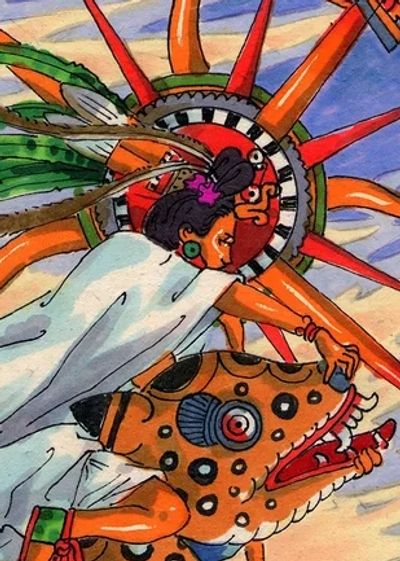 5 April - Four Ollin is the name-day of Tonatiuh, Our Lord the Sun. On this day He was reborn from the sacred fire at Teotihuacan. On this day we remember His sacrifice, how He sacrificed Himself in order to light the darkness. We give Him thanks for His gifts of light, heat, and knowledge.